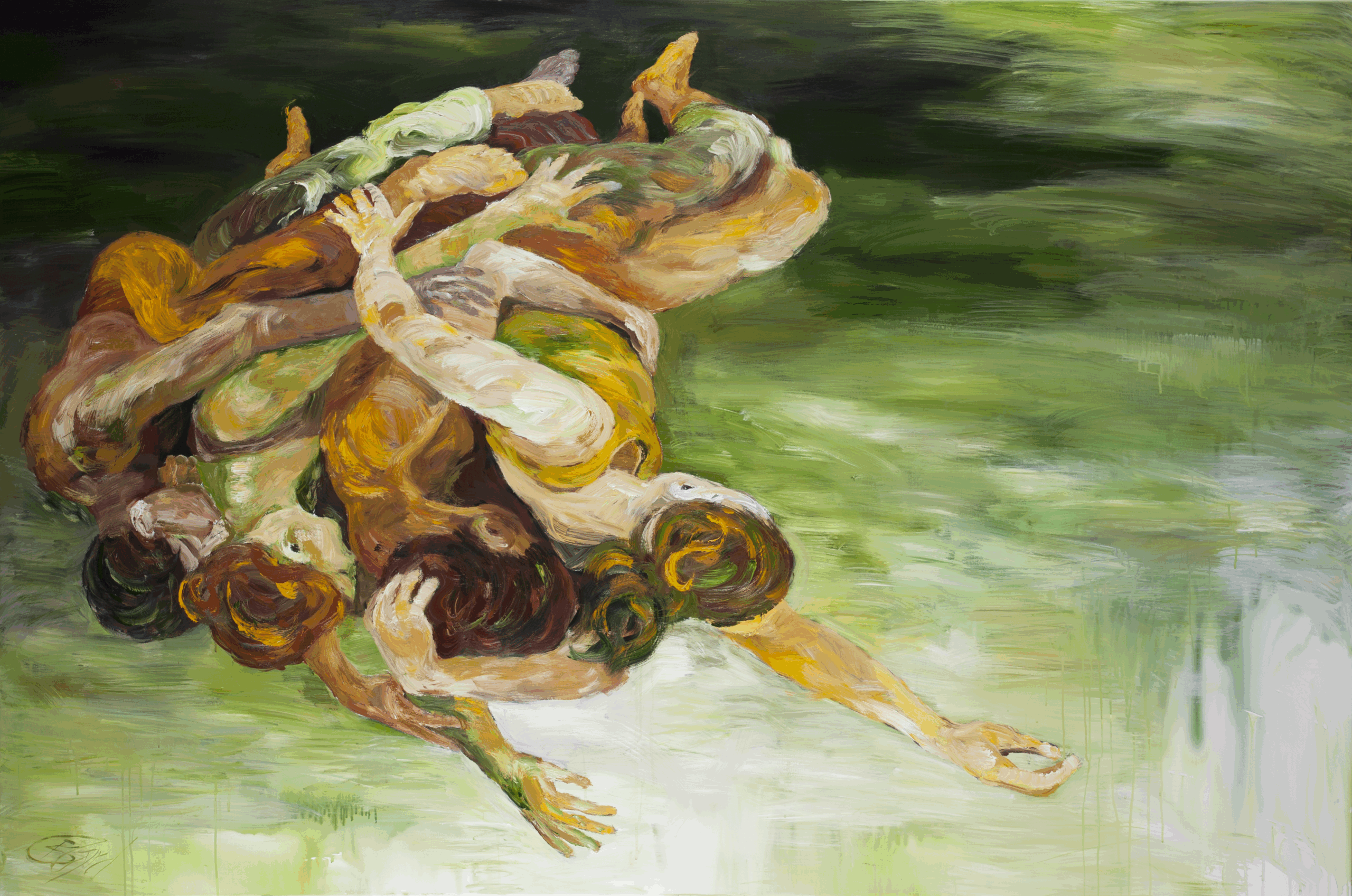 Tangoens toner fylder sidde malerier med elegante bevægelser i blålig melankolsk skær med touch af glødende hjerters ordløse samtale. Modllerne er dansere jeg hyrer i tangoens fødeby Buenos Aires.