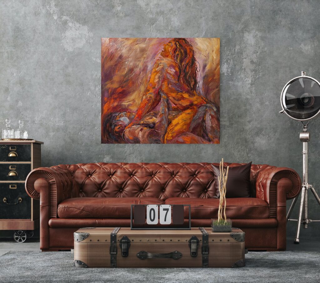 På siden kan du gå på opdagelse i de forskellige rum og finde det maleri, der passer bedst til din stil og stemning. Hver kategori indeholder unikke værker med forskellige farver, motiver og udtryk, så du kan finde præcis det kunstværk, der taler til dig. Klik dig igennem de forskellige sektioner og oplev, hvordan min kunst kan bringe sanseligt liv til dit hjem.